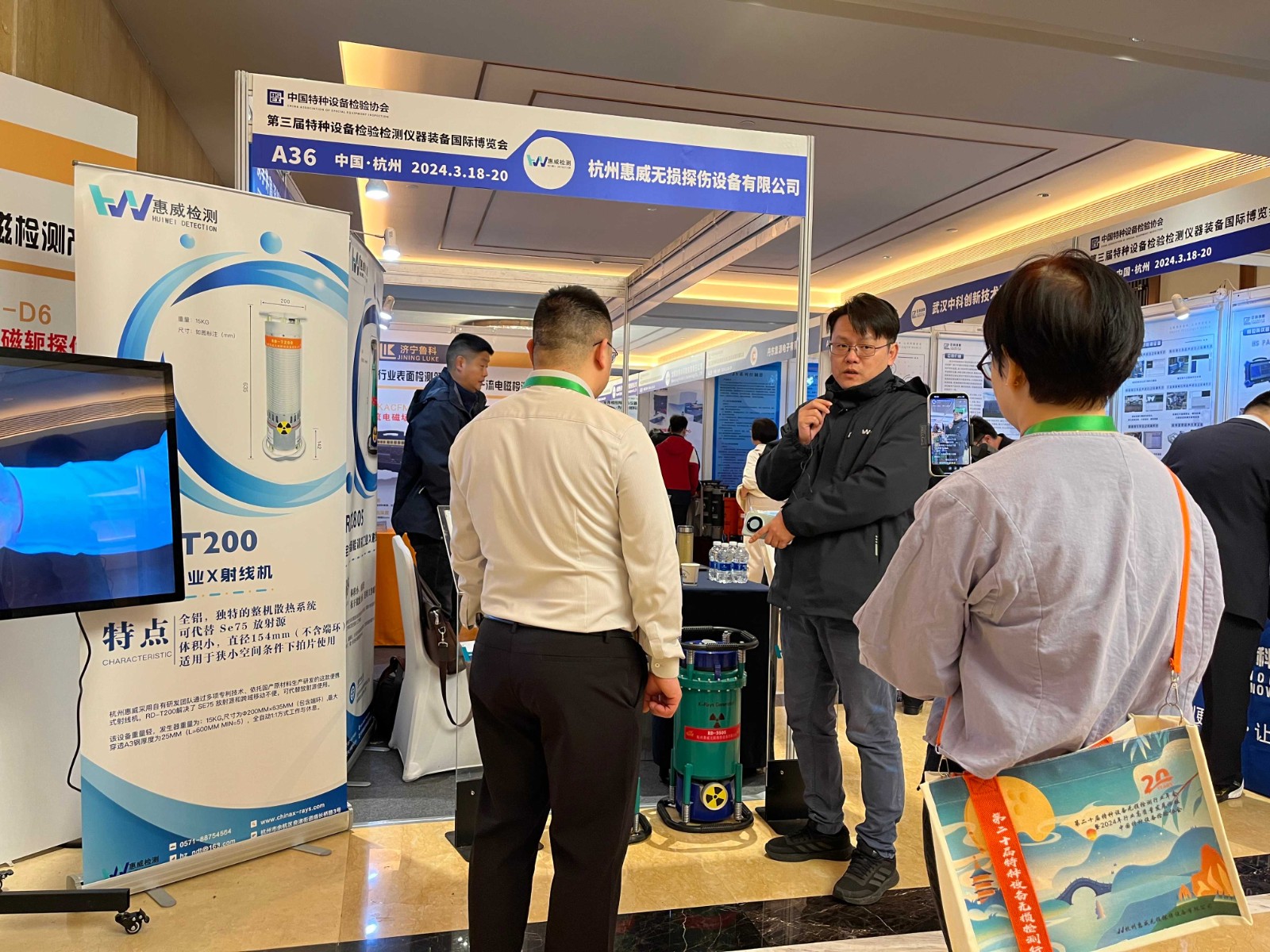 本次年會(huì)與第三屆特種設(shè)備檢驗(yàn)檢測(cè)儀器裝備國(guó)際博覽會(huì)同期舉辦,博覽會(huì)規(guī)模空前,80余家展商現(xiàn)場(chǎng)設(shè)展,杭州惠威在此次展會(huì)上展示了公司RD系列28053505G300360LG等各類便攜式工業(yè)X射線機(jī)。